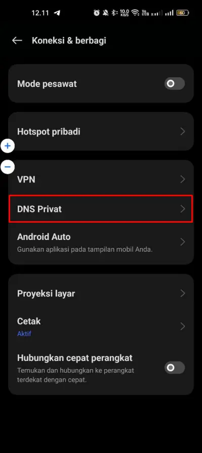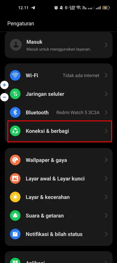- Pilih Koneksi & Berbagi (Connection & Sharing).